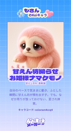 こんばんはっ 熱辛いよぅカロナール飲んで寝腐ってるよ😇👼🏻🌌🪦 てかみんな koiキャラ診断?ってやつやった?? 拗らせナマケモノやばいけど結構当たってる!Wこれ面白いからみんなのも知りたーい₍ᐡ> ̫<ᐡ₎🌟 もか